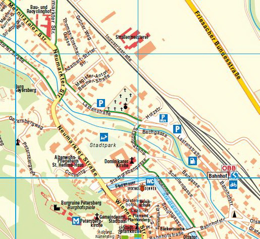 Anreise / Treffpunkt 15.00-16.45 Uhr: "Wulzparkplatz" – gleich vor der Stadtmauer neben "Zweirad Wulz", Neumarkter Straße 5 (siehe untenstehende Detailkarte).