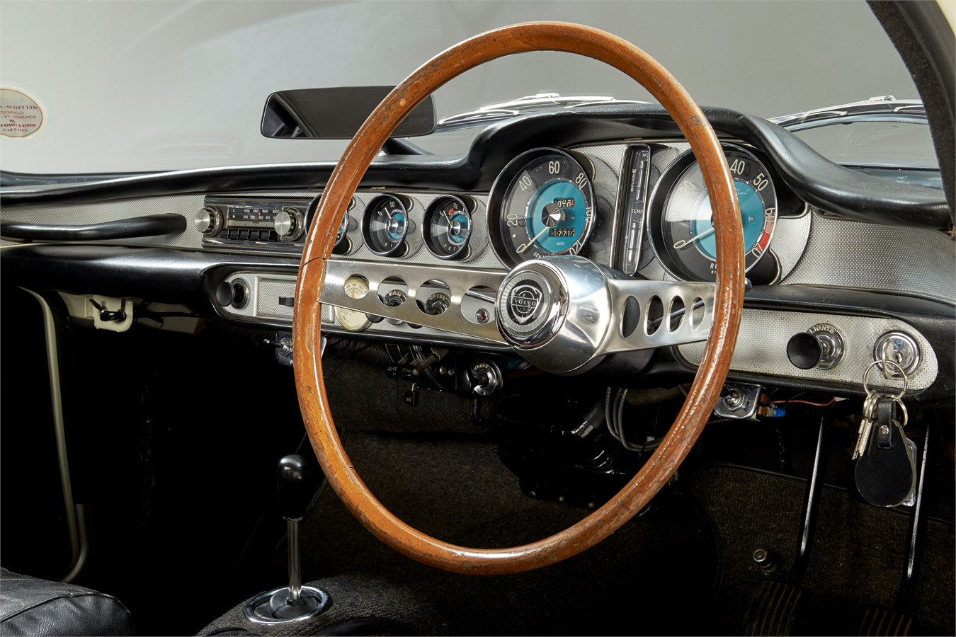 Der polarweiße P1800 S von Roger Moore wurde im November 1966 im schwedischen Werk Torslanda gebaut. Er verfügt über Minilite-Reifen mit Felgen im seltenen Original-Speichen-Design, Hella Nebelscheinwerfer und ein Volvo Holzlenkrad. Im Innern des Sportwagens finden sich noch Details aus „Simon Templar“, wie beispielsweise das Thermometer im Armaturenbrett und ein kleiner Ventilator, der dem Schauspieler Erfrischung verschaffte.