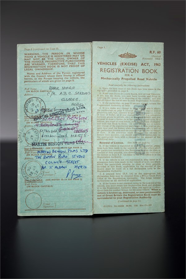 Roger Moore ist laut Fahrzeugbrief, der in Essen ebenfalls ausgestellt wird, der erste Besitzer des P1800. Das Londoner Kennzeichen „NUV 648E“ wurde am 20. Januar 1967 ausgehändigt. Zwei Wochen später unterzeichnete Moore die Papiere. In „Simon Templar“ trägt der Sportwagen das berühmte Kennzeichen „ST 1“, angelehnt an die Initialen „ST“ des Hauptdarstellers, die auch im Sinne des englischen Originaltitels „The Saint“ (der Heilige) gelesen werden können.